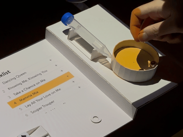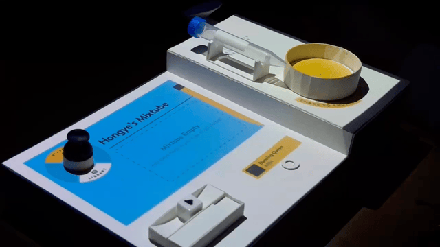 Each feature of the Music Lab is represented by real physical objects that users can touch and interact with, from creating new playlists, adding songs to a playlist, playing & pausing songs, and fast-forwarding songs, etc.