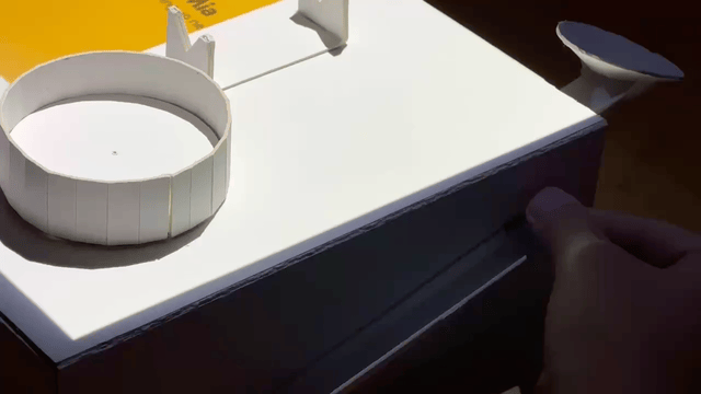 To pause music momentarily, the user can remove the play cube and rest it on the large surface at the bottom left of the scrubber. Likewise, to stop entirely, the user can place it in the indented area at the bottom right corner. Projections on the cube would update the player’s status and change accordingly.