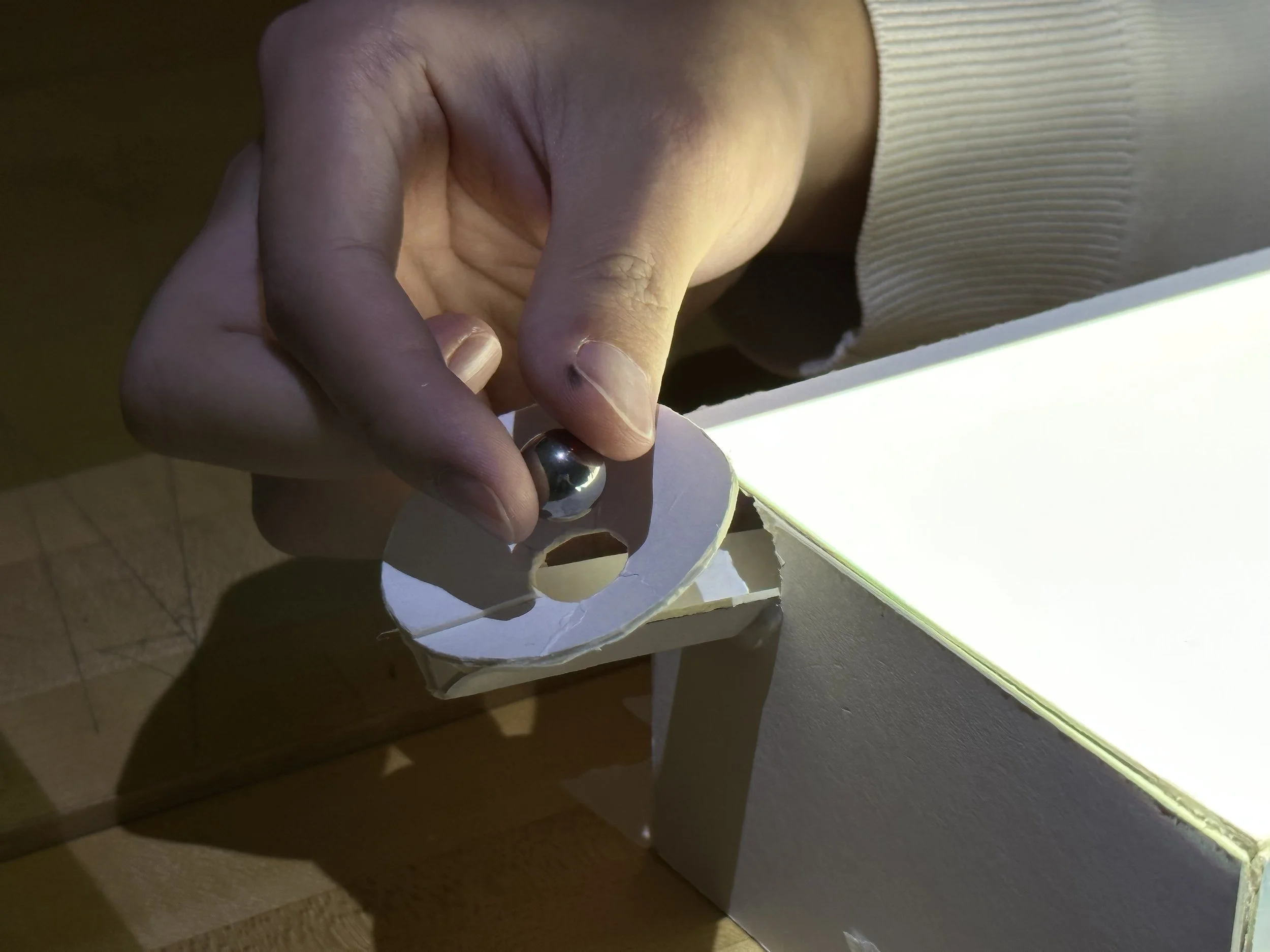 Adding a metal ball initiates activation of the music bin and notification of the added song’s info.